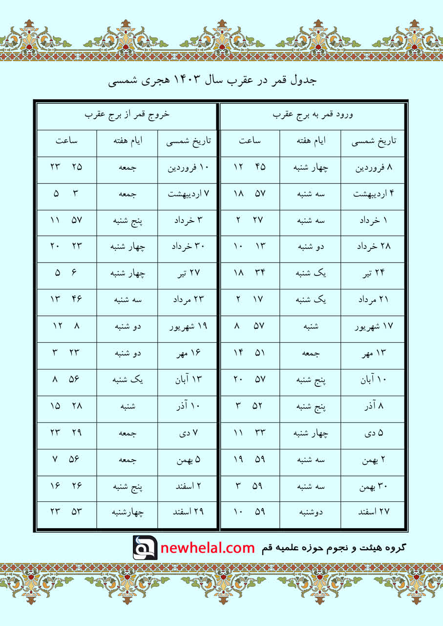 استخراج قمر در عقرب سال ۱۴۰۳ شمسی