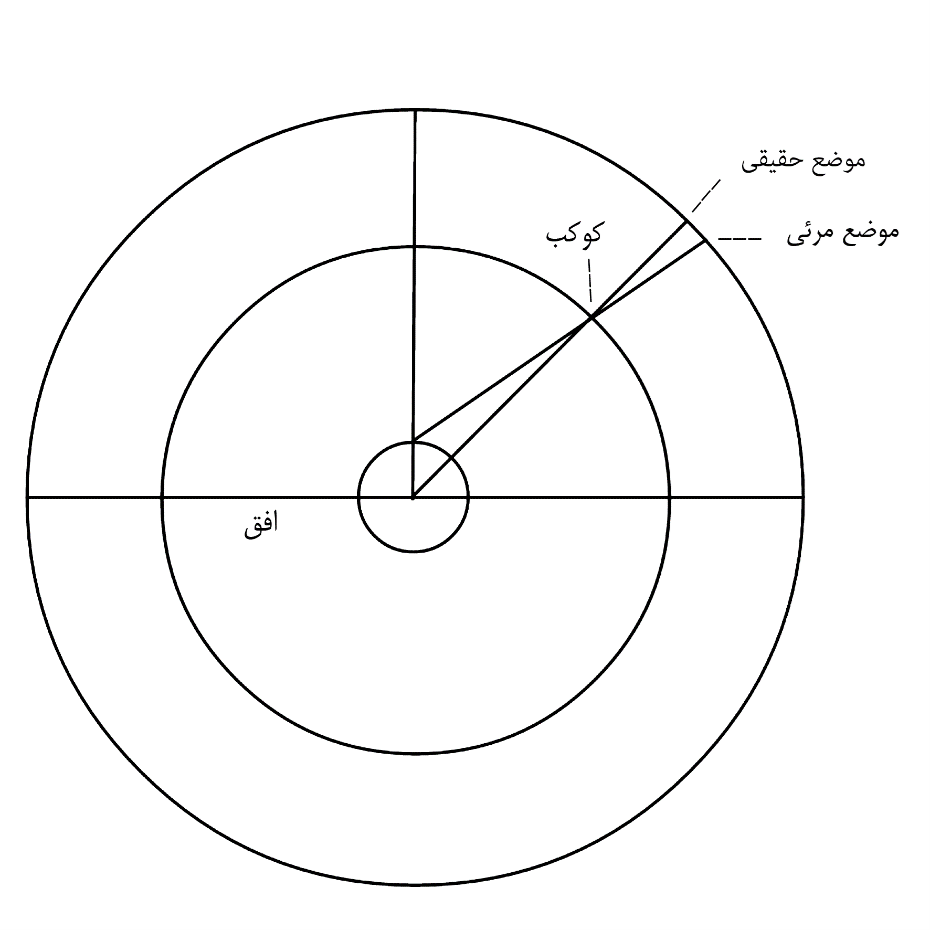 [10] هو (أي اختلاف المنظر) البعد بین موضع الکوکب المرئي و بین موضعه الحقیقي.