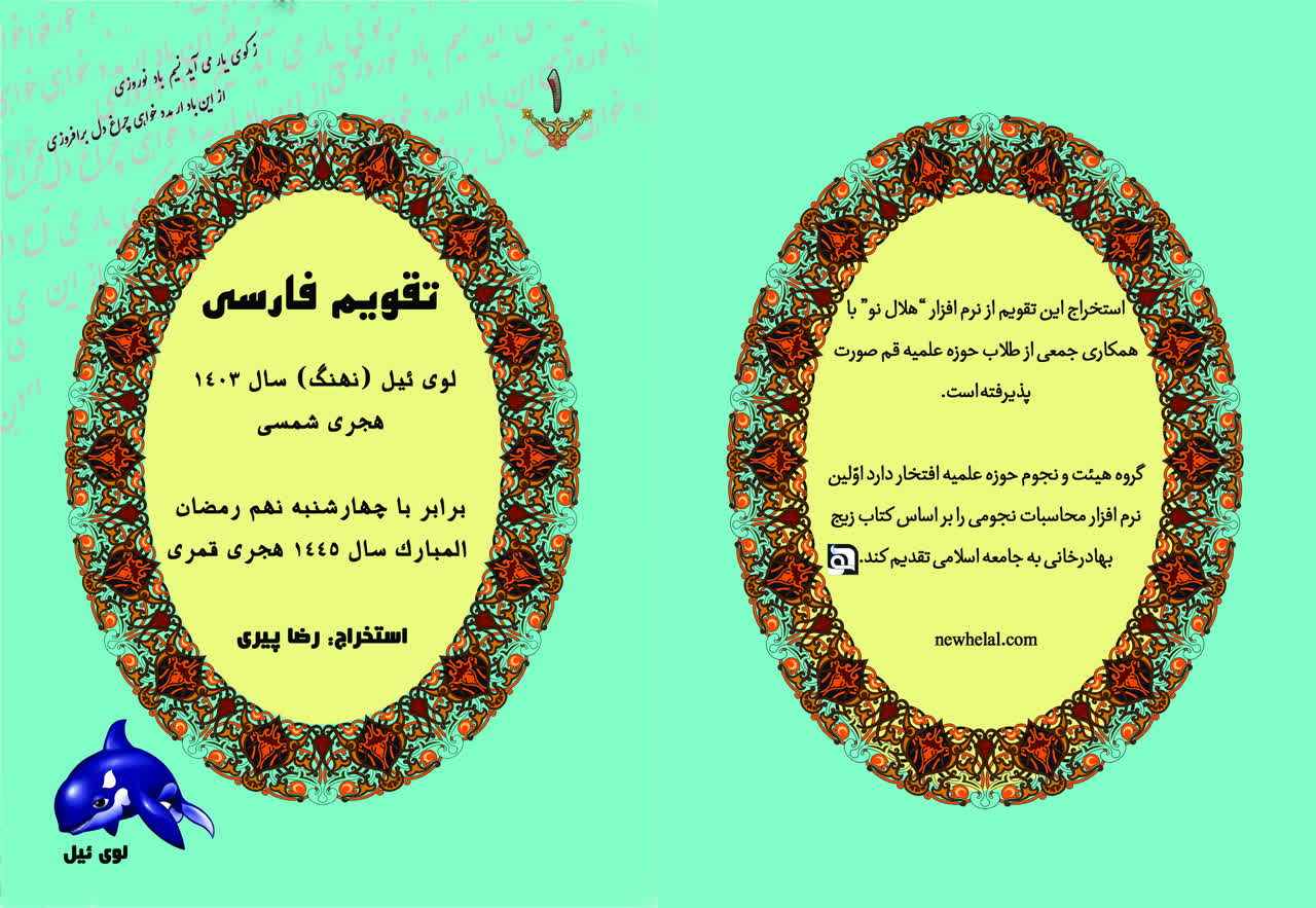برای اولین بار تقویم نجومی سال ۱۴۰۳ هجری شمسی بر اساس محاسبه با نرم افزار جامع هلال نو طراحی و به جامعه اسلامی تقدیم می شود.